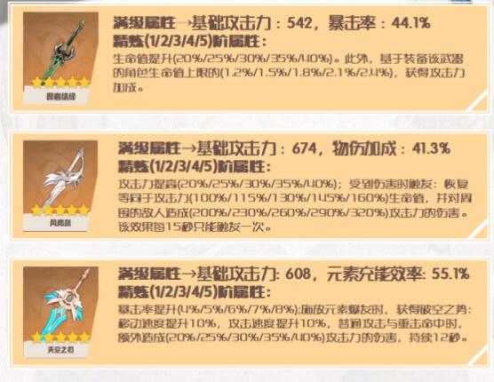 1、第一套的主打是高额的暴击率,而且该武器的圣遗物也非常的好成型;