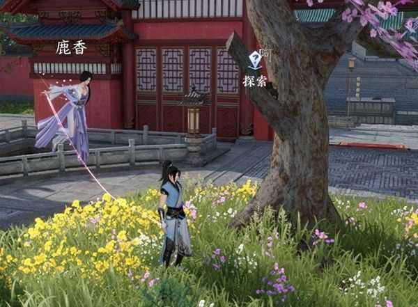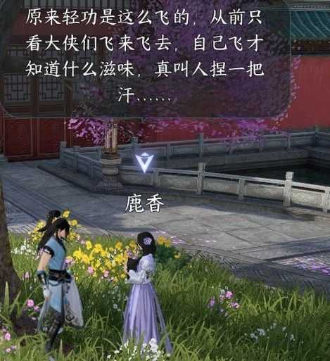 然后跟着任务提示找到鹿香姑娘,对话完邀请她挂风筝,猫就在对面院子里的树上。