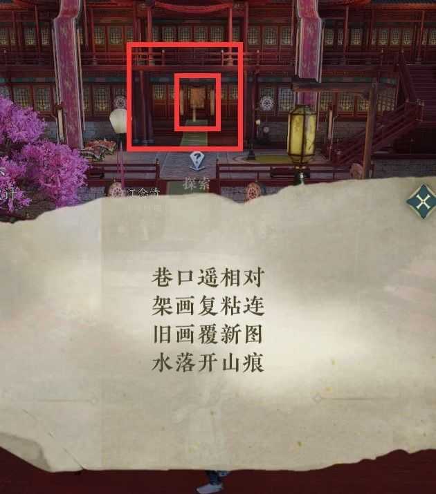 过去用水技能对着画释放即可。如果没有学会蛟龙得水技能,可以用 冰+火技能,画会脱落,拿着画去找最初的那些姑娘,给他们即可。