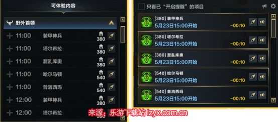 从中午11点开始,每小时出现一次,直至第二天凌晨5点,共计刷新19次。每次会刷新多个BOSS出来,每个BOSS有相对应的装等要求。