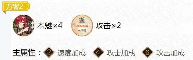 二、御魂推荐方案2:木魅x4+攻击套x2御魂位置2号位:速度4号位:攻击加成6号位:攻击加成