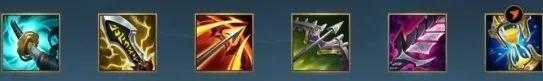 就如同之前所说,卡莎的Q(1)技能是核心,出装也以先进化Q(1)技能为主。长剑出门,选择暴风之剑+掠魂节杖(绝境制裁)+长剑这三件装备能提供72点攻击力加成,刚好够进化Q(1)技能。之后暴风之剑合成岚切,掠魂节杖合成饮血剑(绝境制裁可合成凡性的提醒,因对面阵容决定出哪件装备)。