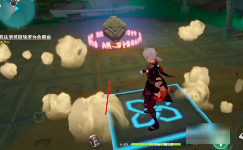 在右侧的位置处,我们踩在石板上,可以触发机关。