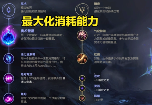 1,基石符文可以选择彗星,彗星可以让你自己自带的减速效果可以进行命中率的增幅,让你自己最大化的可以获得收益,法力流系带以及绝对专注还有焦灼。