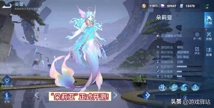 由于才刚开始测试,因此与其他新英雄一样,“朵莉亚”局外模型和出场动作还未制作完成,她是一位擅长团队增益的辅助,金币价格是13888,系统推荐分路为游走路,局内释放技能比较耗蓝,对蓝BUFF强需求,强势期在后期。