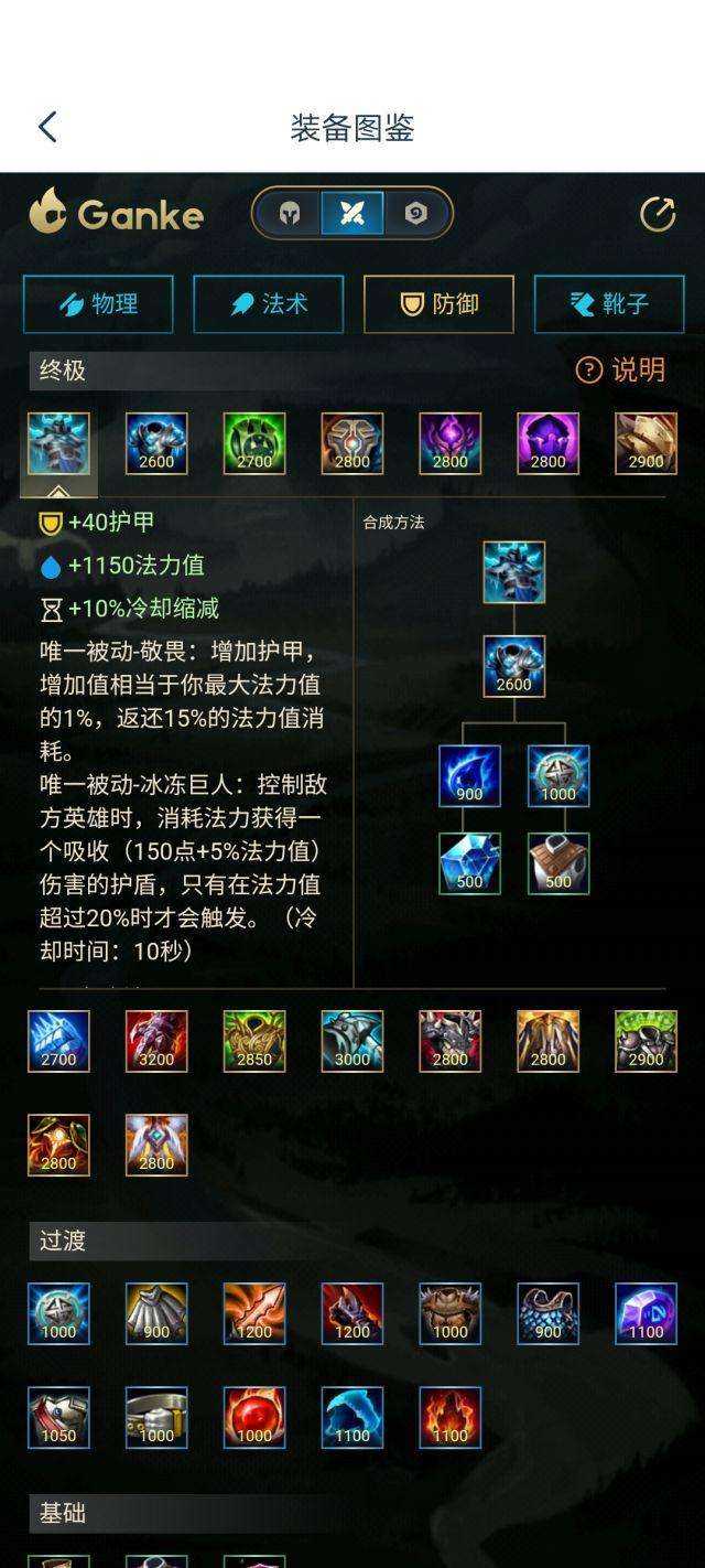 冬甲,核心装备,蓝量越高,加成的护甲越高,控制对方还可以刷盾,跟余震叠加一起,简直肉到爆炸。