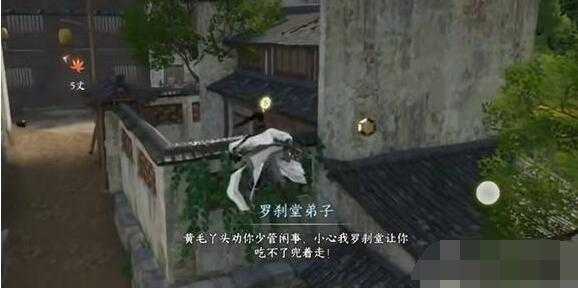 3、使用轻功就能够很轻松的抓住他,之后他会威胁玩家。