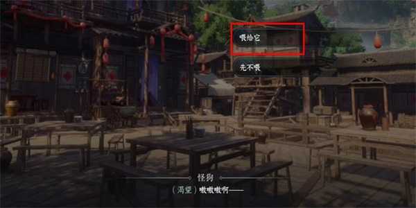 2、接着我们就需要带上吃的,前往到NPC家里查看狼的身影。