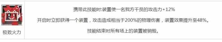 装置拥有天赋团结的力量:使身后一格友方干员受到的物理伤害减少20%。