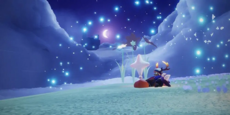 需要玩家找到向导先祖进行对话后才可领取免费的“普通相机”,而向导先祖的位置就在云野地图中,玩家得前往云野蝴蝶平原左侧的隐藏图,然后来到隐藏地图的三角洞口处,此先祖就在该地点等待光之子的到来。