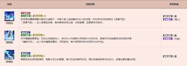 2、被动招式:惊天之力:有30%+x%的几率使目标陷入内伤状态,使出招式时使对手受到伤害。