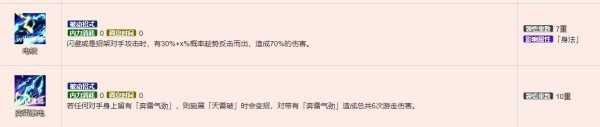 4、被动招式电绞线:闪避或格挡对方攻击时,有30%+x%机率乘势反击造成70%伤害。