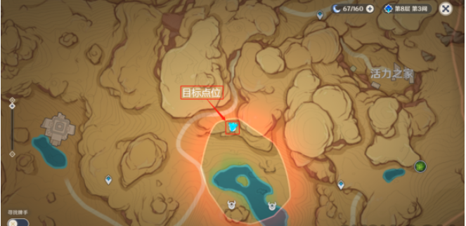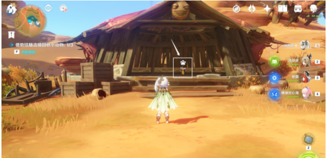 4.沙狐1号点位如上图目标点位所示,在丘丘人的大屋棚里,靠近沙狐后点回收即可。