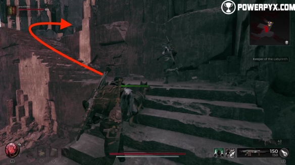 现在前往迷宫中的破碎入口世界之石。爬上右边的第一段楼梯,然后再次右转。