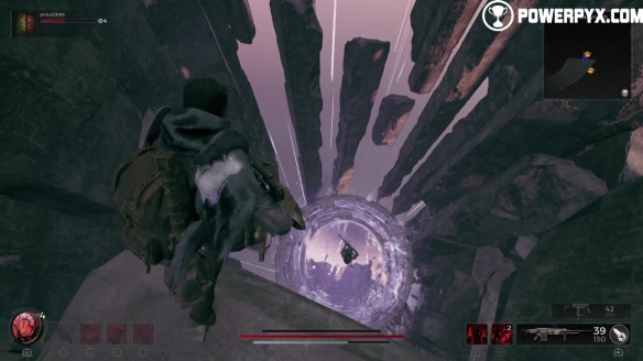 将平台的末端放到下面的另一个平台上,然后继续穿过另一条形成的路径,朝您前方的小门户前进。当你看到门户时,不要穿过它,而是在它后面。然后,向下看下面以找到另一个门户。向下拖放到其中,然后通过左侧的下一个门户。