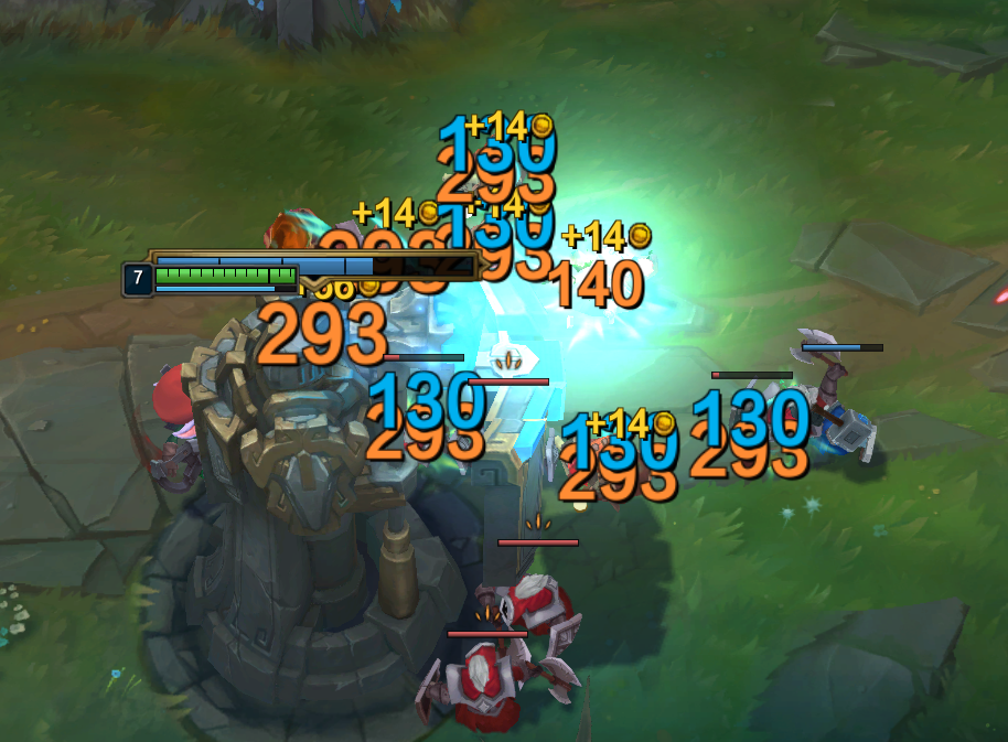 辅助不上,安稳补刀,优先打离对方近的兵,尝试用E的爆炸溅射对手
