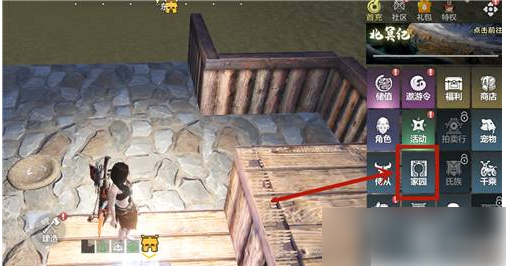 第一步:打开菜单功能栏,点击里面的【家园】按钮。