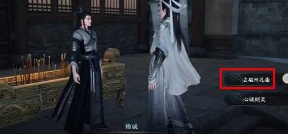2、随后就是在对话中是知道杨诚是想要参拜圣人,但是大家都是在参拜,所以这里玩家是建议他前往磁州孔庙。