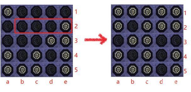 2、最后一个彩灯会使得自身和周围相邻的彩灯亮起,因此需要保证倒数第二次控制彩灯之后出现只有最后一个彩灯和其相邻的彩灯处于熄灭状态。因此使用倒推法即可解决问题,挺有意思的小游戏。