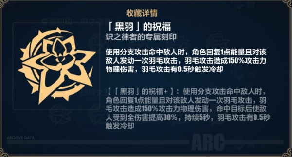 专属刻印「黑羽」:前期识之律者比较缺SP,黑羽可以保障不断大的同时,且提供30%的易伤,如果第二关选择「黑羽」则可以开局不带鬼凯助战。