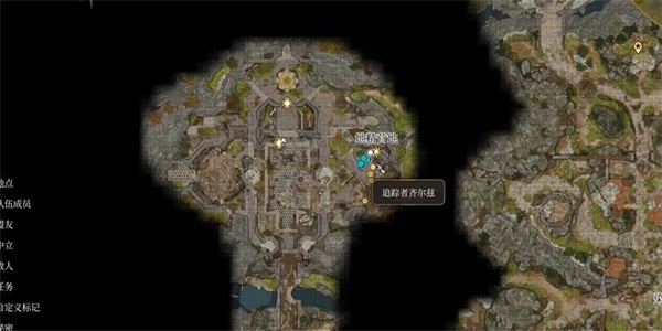 1、首先来到下图地精营地这个位置,需要在这个位置找到女神像;