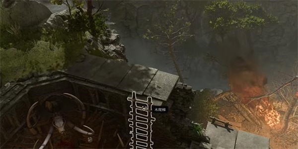 2、到达指定的位置之后可以看到一个木楼梯,玩家可以通过这个木楼梯往上爬,爬上去之后需要往左边走到达一个绿色的草坪;
