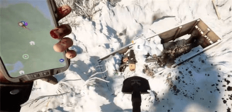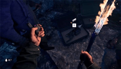 玩家来到直升机坠毁地点,向北方向走会看到一个洞穴,在洞穴里面会找到一把滑索枪。玩家打开GPS定位器,找到三个圆形标记处,在靠近洞口的位置,会看到一具挂在绳子上的尸体,玩家把绳子砍断后,搜索尸体会获得一个手电筒。玩家来到直升机坠毁处,沿着河流走会看到一个结冰的湖,在湖旁边有一个冰洞,玩家在冰洞里会找到许多物资。