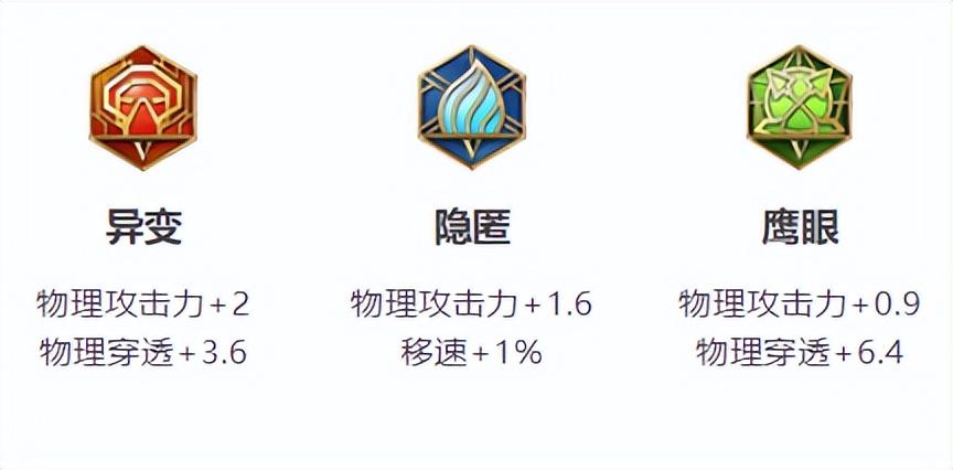 经典的刺客百穿铭文搭配,因为云中君优先狩猎的目标为后排,可以最大化的利用属性效果