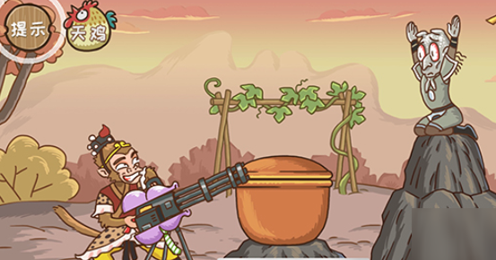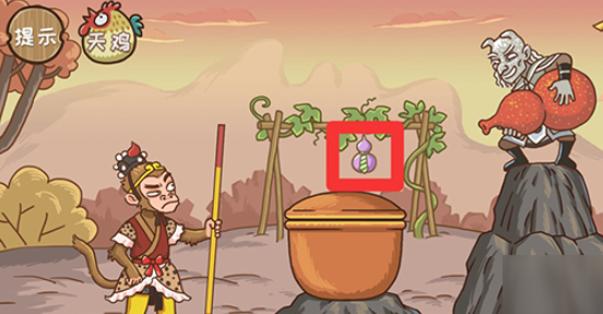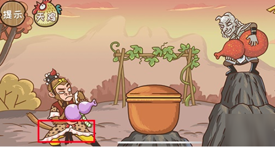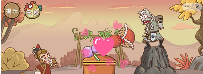 将在紫色的葫芦移动到孙悟空的前面,这样就会变成孙悟空的武器,接着点一下银角大王就可以通关。通关之后玩家还能再玩一次,去触发情人节的彩蛋,前面的操作也是一样的,到了后面将紫色葫芦给孙悟空的时候,我们再将孙悟空的裙子移动到银角大王身上,这样就能触发彩蛋。