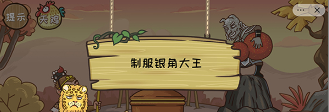 关卡要求是制服银角大王,需要玩家找到能打败银角大王的方法,首先我们进入关卡挑战之后,需要点击画面一次,不用去点猴子或者是银角大王,直接点旁边的画面,然后等十秒钟,接着就会出现孙悟空和银角大王对峙的画面。