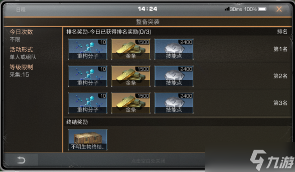 排名奖励次数和不明生物共享,每日最多获得3次,终结奖励最多获得1次。