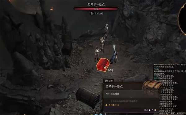 2、这时需要进行觉察鉴定,鉴定成功之后,如下中间位置会出现一个竖琴手补给点箱子。