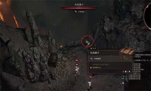1、当我们来到幽暗地域复仇之路西边一个悬崖边后,在清理完几个宝箱怪之后,能够在地上发现一个玩具宝箱。