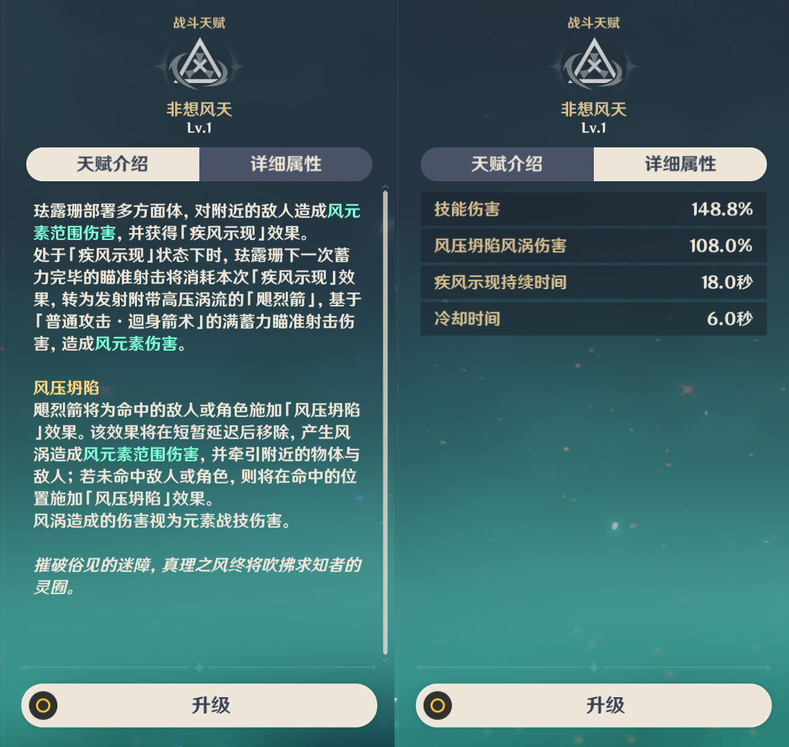 该天赋可以增加队伍中风元素主C的攻击造成的伤害。需要注意的是,该天赋的加成是按照珐露珊的基础攻击力计算的(类似于班尼特的元素爆发的计算方式)。