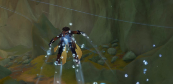 4、顺着洋流到下图位置后对面有一个水环,会把你送回1中的地方,可以在水下找到一个华丽宝箱、一个精致宝箱和一个水神瞳,解密完成之后变水底之后,就会出现一只超大号寄居蟹就是【铁皮子爵】;