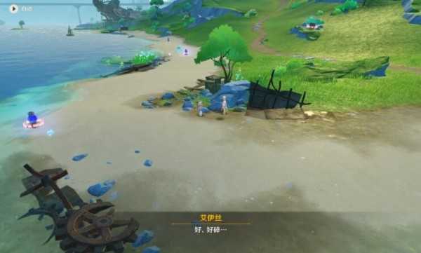 5、当对话结束后,我们马上向这艘船的方向游过去,一直追,当消失不见时,与艾伊丝对话进入下一阶段。
