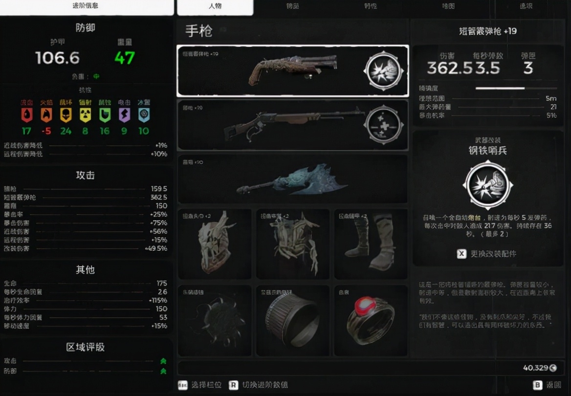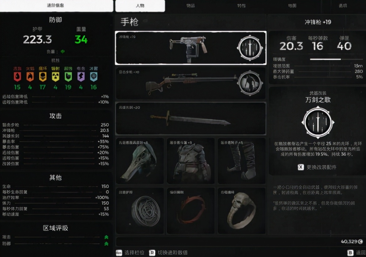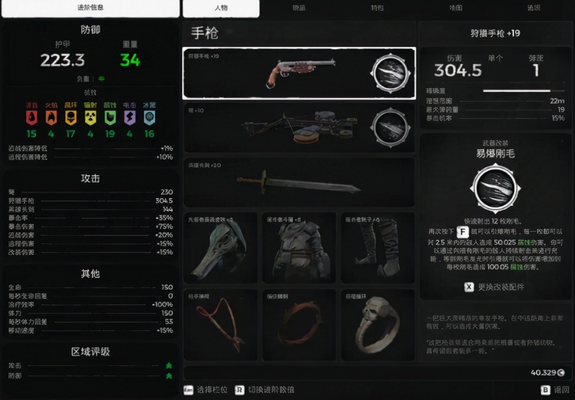 两个武器的改装可以带猎人标记和万剑来增加伤害,近战武器用来打流血标记【三层】三个吸血饰品,低难度很快乐的近战流派,没有恐惧边缘就带扭曲神像。高难度最好带上减伤,要不然你死的比谁都快,别问我为什么知道。