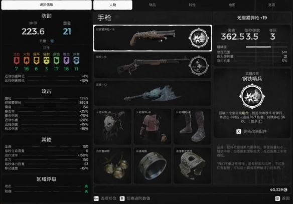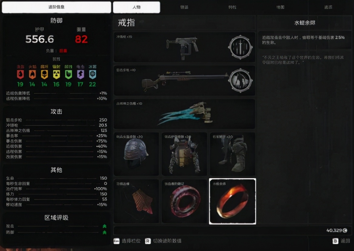 副武器随便带【改装带魔潮就好】项链没有放射性余烬可以换成医疗神符,戒指可以赌徒换猎人【根据boss来决定】,这套伤害主要是魔潮的腐蚀能力加上射线步枪的沙漠气息的伤害,而且优先叠满自身光耀的buff,伤害满分。