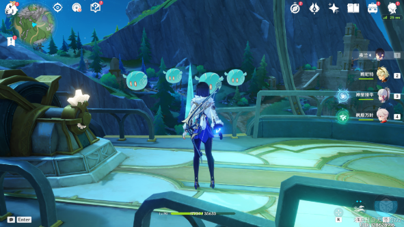 2、再来到下图位置击破第二个天上的风史莱姆;