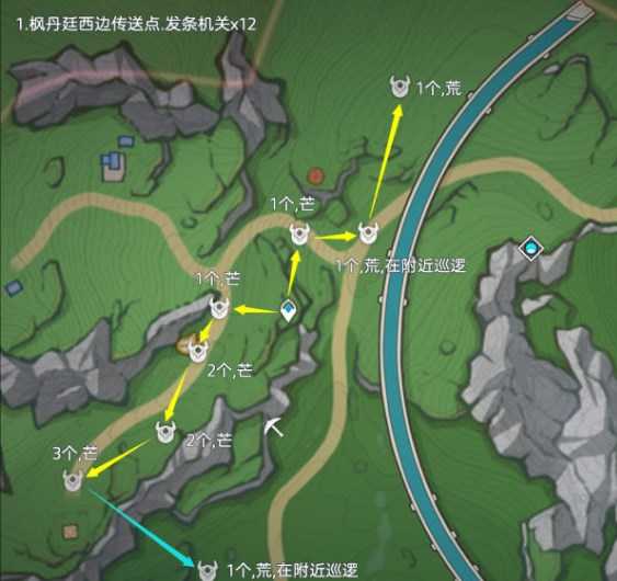 重要提示黄色路线为高效率刷取路线、推荐去;