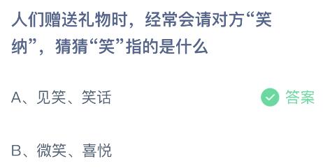问题一、人们赠送礼物时,经常会请对方“笑纳”,猜猜“笑”指的是什么?