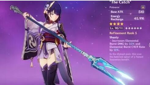 3、原神雷电将军装备选择五星稻光、四星渔获,装备就是旗印4套;