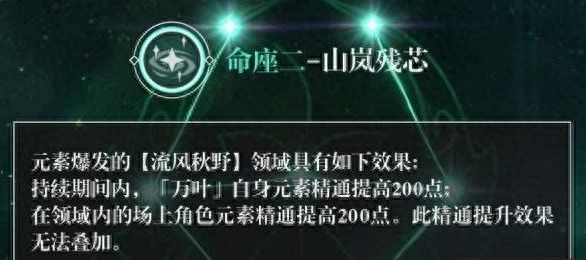 2命显著增强辅助能力,,不仅降低自身精通压力,而且像给给公子,甘雨,胡桃这类吃精通,靠元素反应打伤害的队友,收益更大