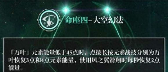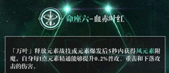 2.万叶打主C,需要解锁6命,开E技能或大招后,获得风元素附魔5秒,同时还提升普通攻击伤害。