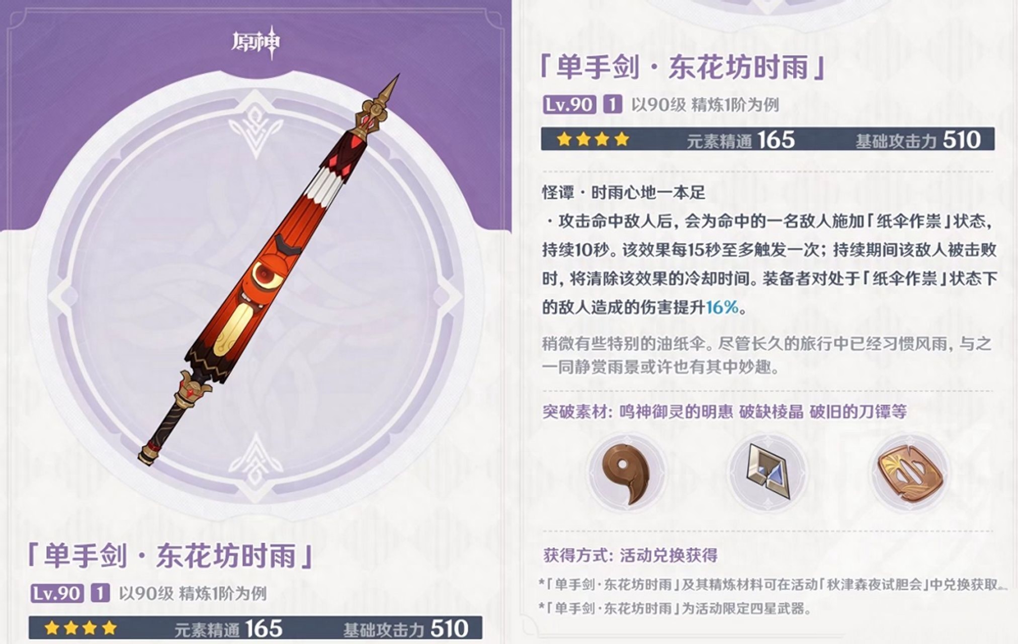 雨伞(活动赠送,和铁蜂刺差不多,看自己喜欢)