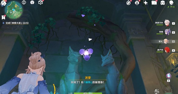 7、进入到后面的屏障中,使用雷元素攻击大狐狸雕像,出现镇物。