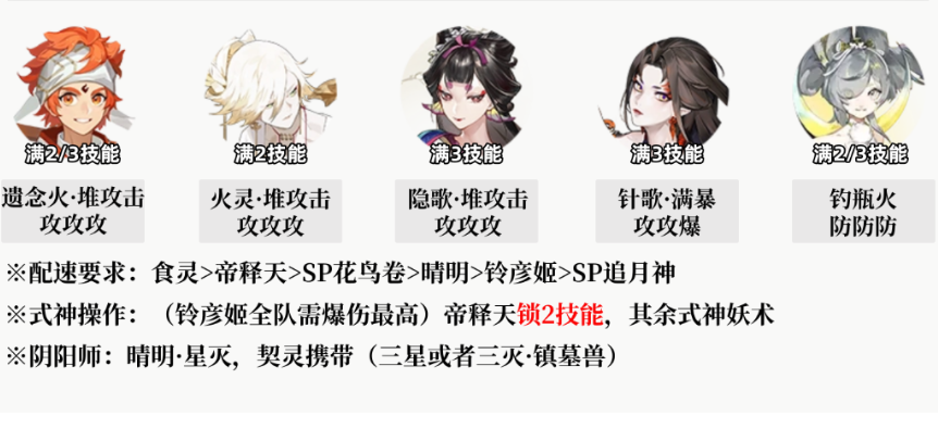 配速要求食灵>帝释天>SP花鸟卷>晴明>铃彦姬>SP追月神