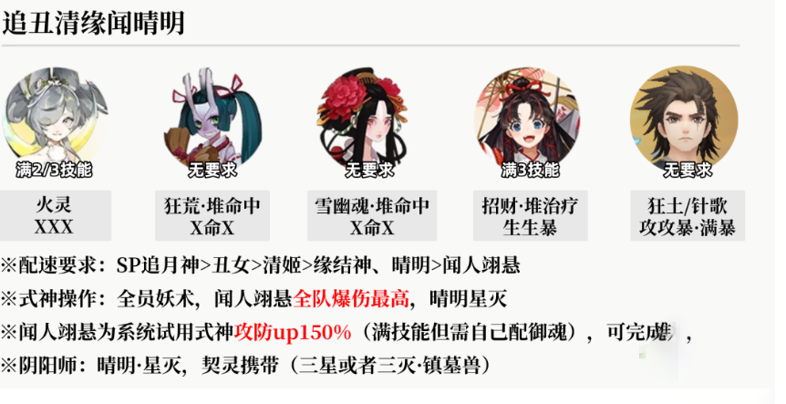 配速要求SP追月神>丑女>清姬>缘结神、晴明>闻人翊悬