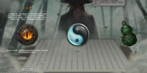 在游戏开局有三个可选的神器,分别为:昊天眼,双鱼佩,炼妖壶。