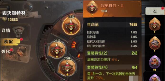 孔卡机芯配件凑成四件套,小队武器攻击力额外提升15%,非常适合开黑的玩家。